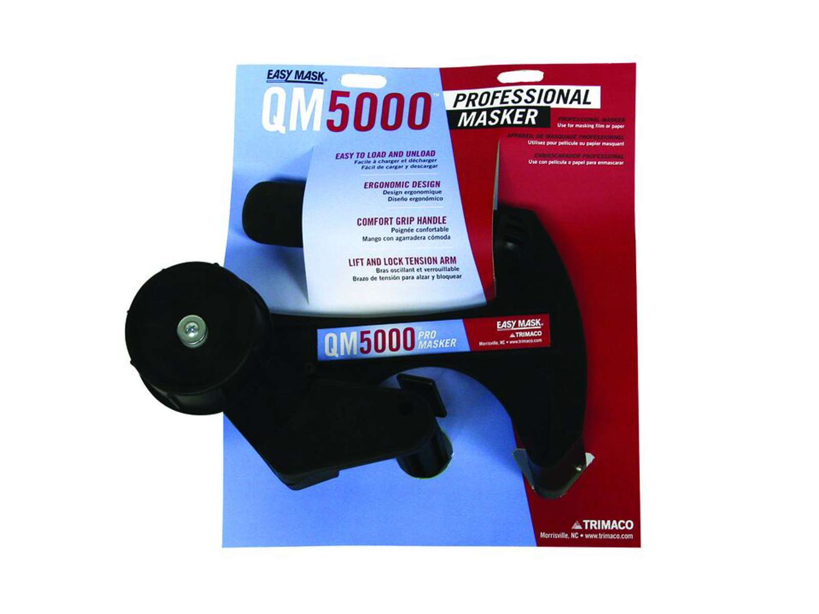 Nyttigt, når du maskerer et område inden maling Påfører tape og papir på samme tid og med en brugervenlighed QM5000 PRO Masker fra Trimaco har et behageligt greb, der gør det nemt for professionelle malere at dække områder. Brug det professionelle maskeringssystem med Trimaco maskeringspapir, film, tape og klinger. Maskeren fastgør tape til kanterne af enten film eller papir, så professionelle malere og dekoratører nemt kan maskere store områder af