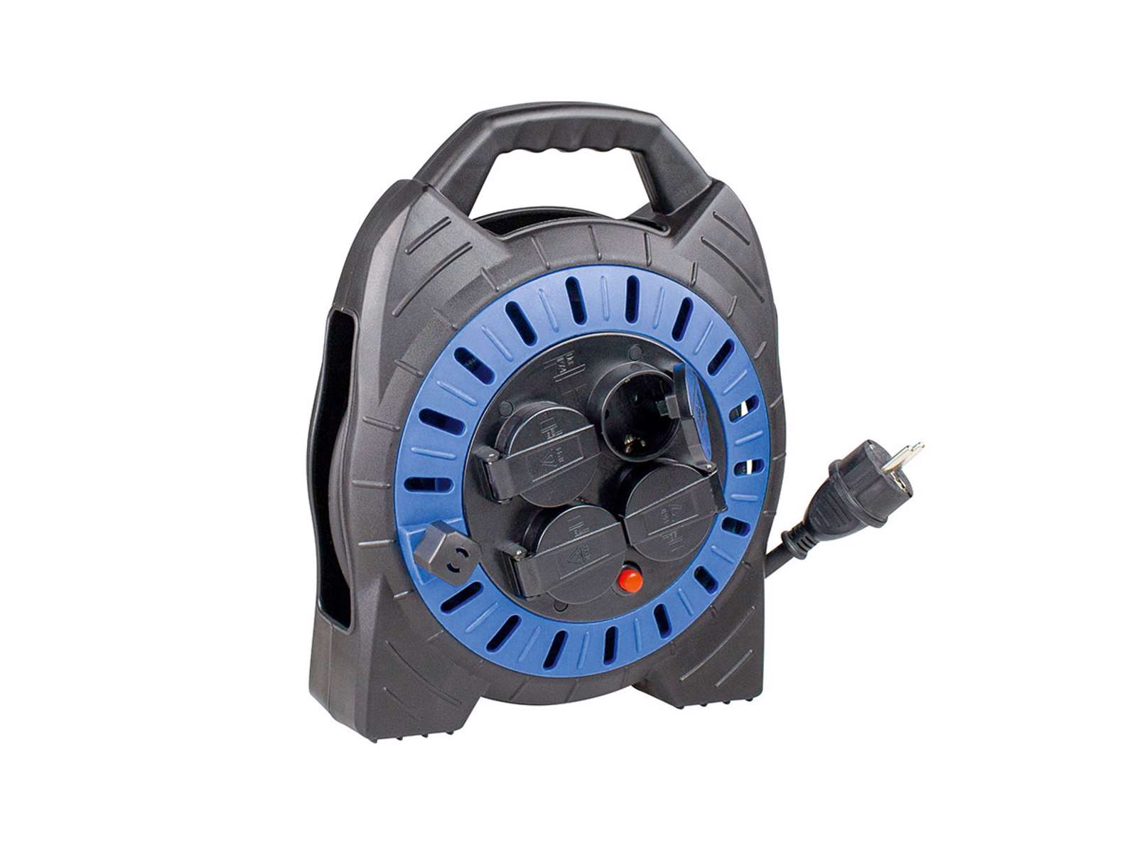 med 4 jordede stikkontakter med børnesikring og hængslede låg