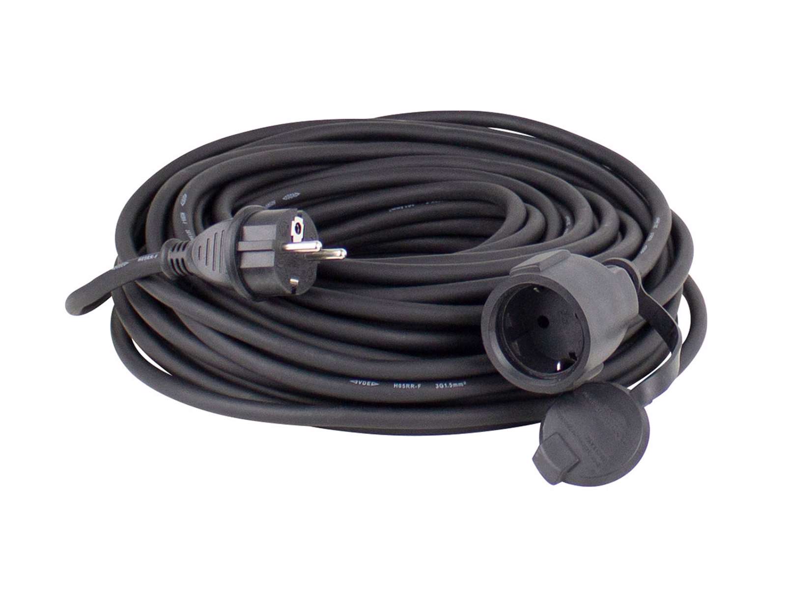 Gummi forlængerledning til byggepladsen, sort. 10M. IP44. Schuko stik og udtag
