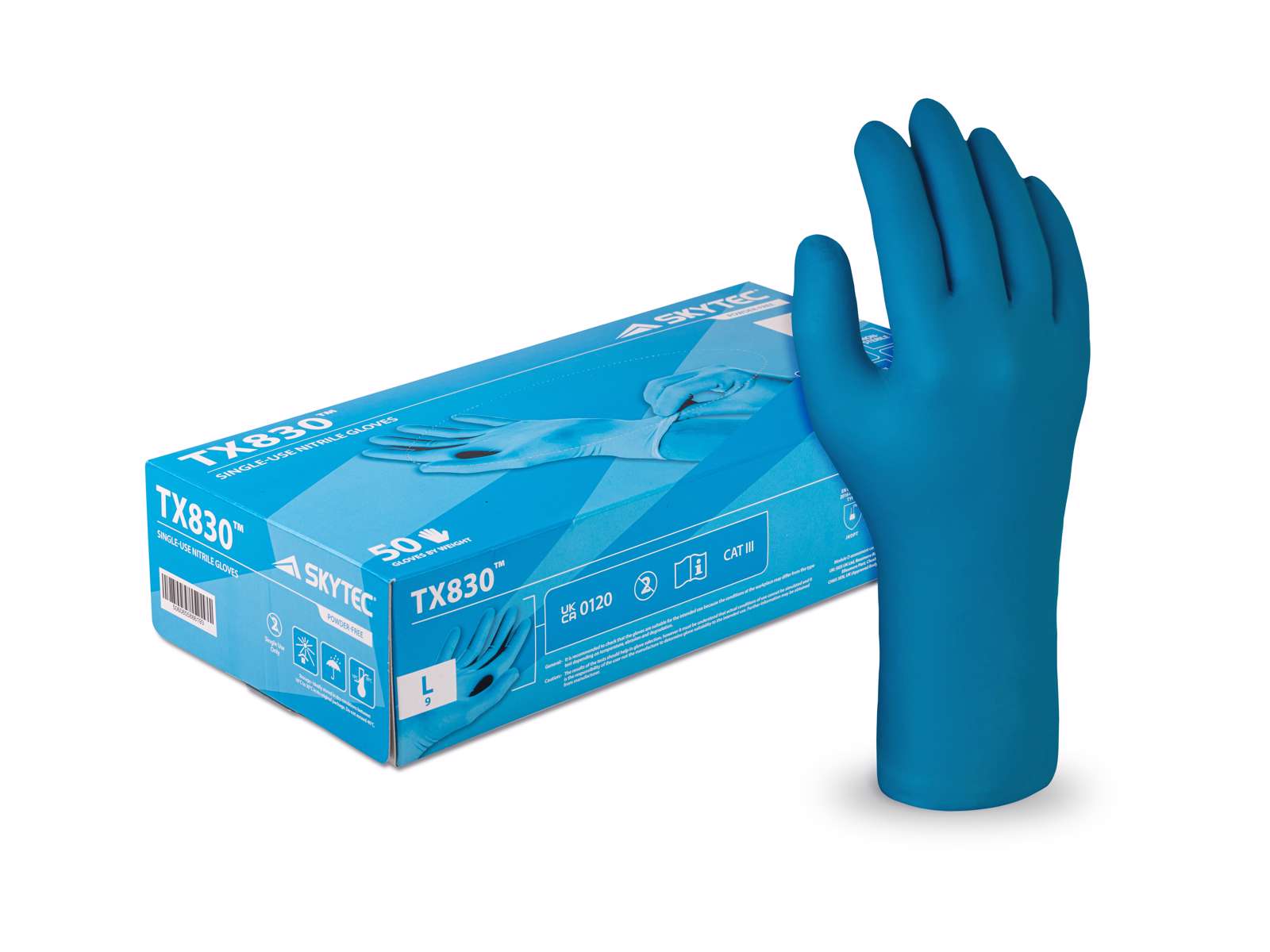 SKYTEC TX830 blå nitril handske 0,20mm tyk - 50 stk.
